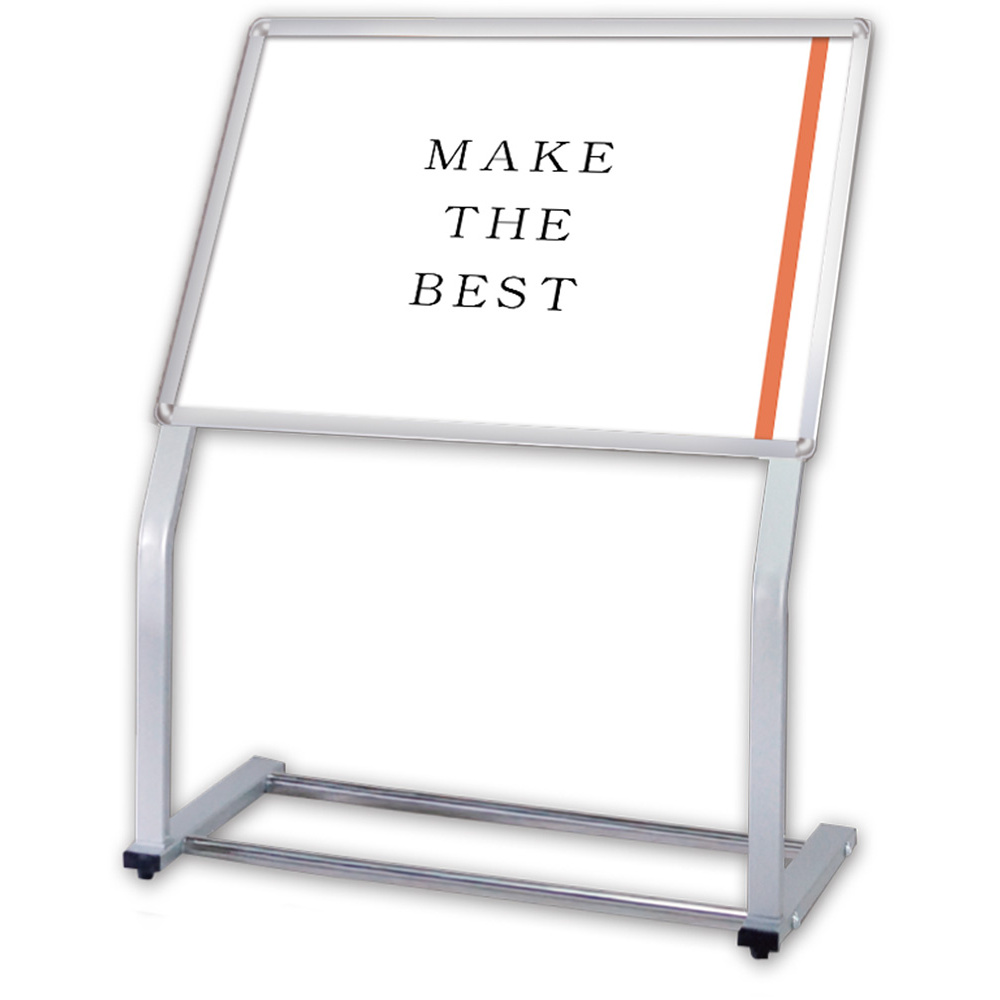 - 脚部がカーブしたスタイリッシュなデザインのポスタースタンドですが、最大B1サイズまで展示できる大型サイズもラインナップしています。