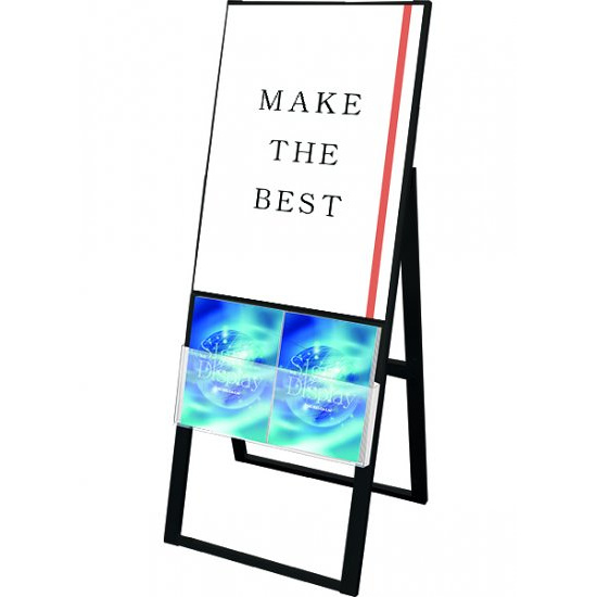 - A4サイズのカタログとポスターを同時に展示可能なスタンド看板