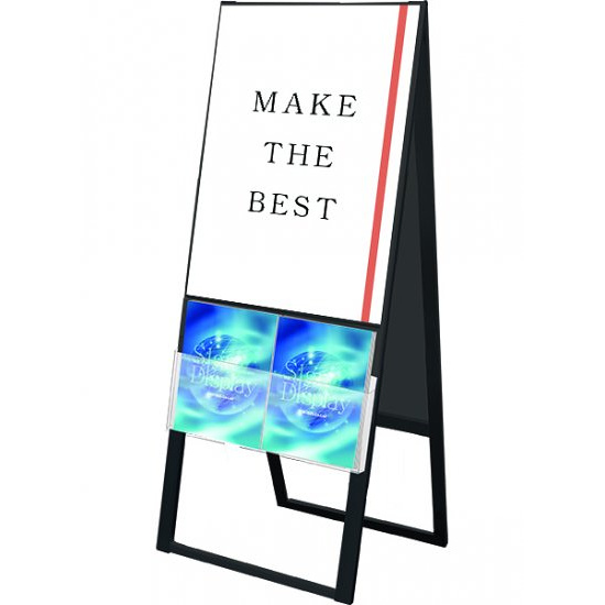 - A4サイズのカタログとポスターを同時に展示可能なスタンド看板