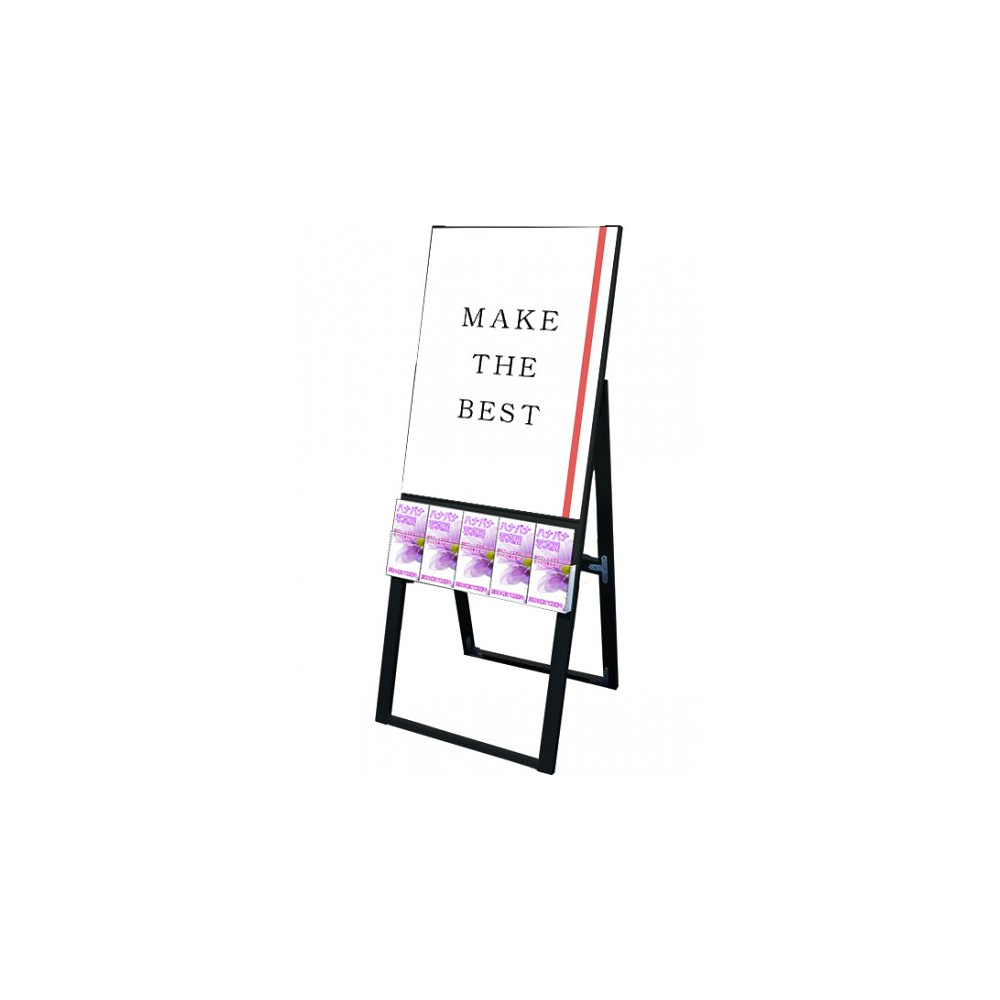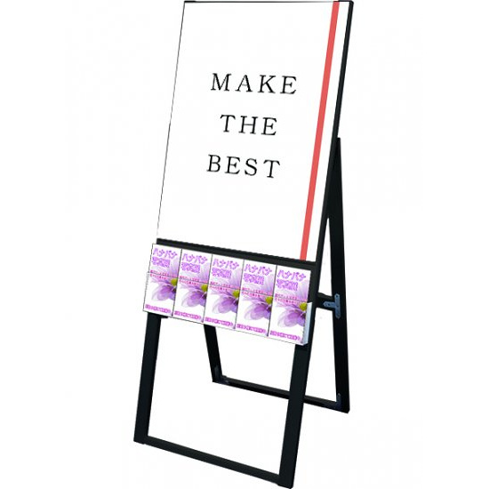 A4三つ折りパンフレットを配布できるケースが付いた横スライド式のスタンド看板