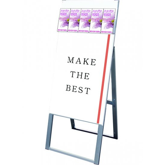 A4三つ折りパンフレットを配布できるケースが付いた横スライド式のスタンド看板