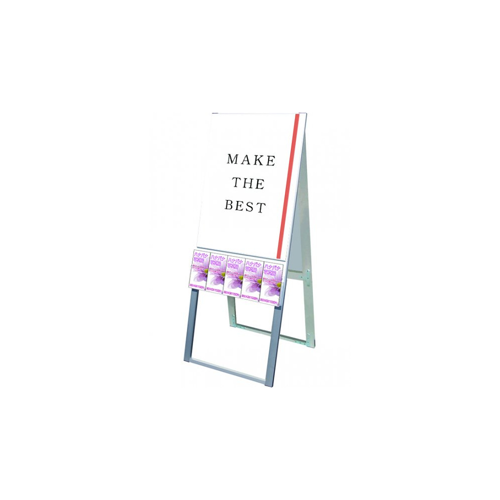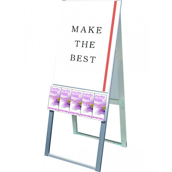 A4三つ折りパンフレットを配布できるケースが付いた横スライド式のスタンド看板