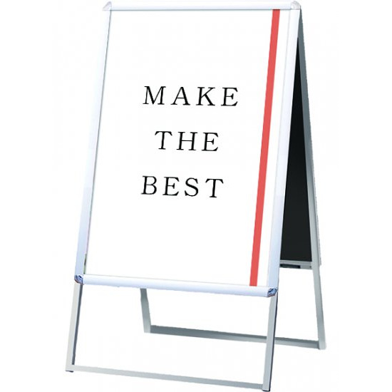 ポスターを雨から守る防水パックシート付きスタンド看板