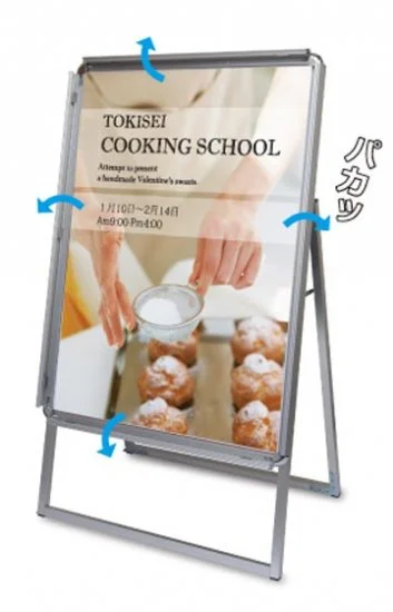 ポスターを雨から守る防水パックシート付きスタンド看板