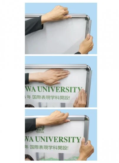 - ポスターを取り付ける方法は、まずフレーム4辺を外側に開きます。