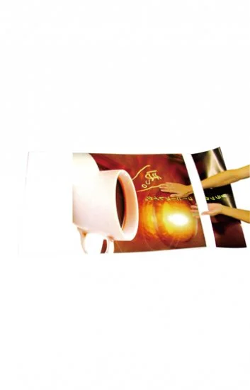 - 次に表面カバーを外し、展示したいポスターを防水パックシートにセットします。