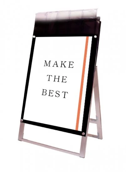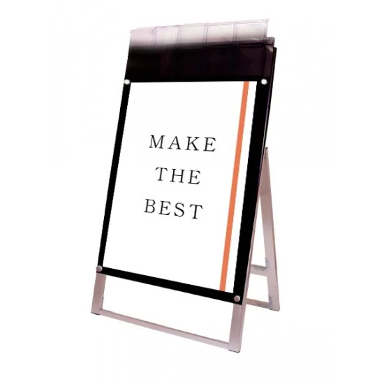 お洒落な雰囲気にも合うA4三つ折りパンフレット用ケースが付いたスタンド看板