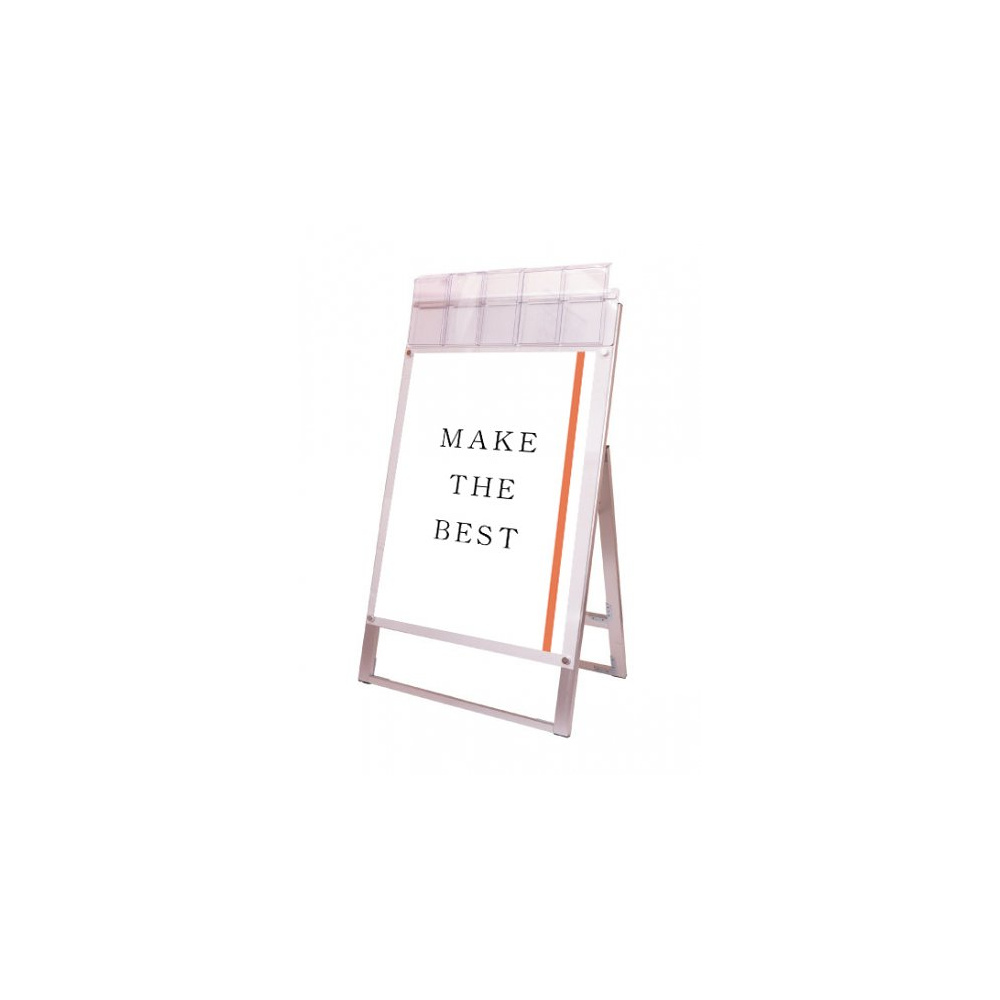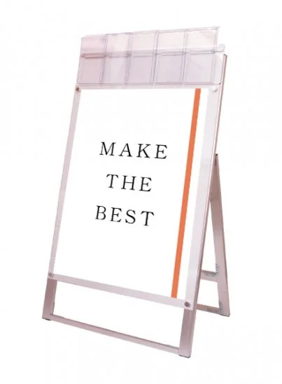 お洒落な雰囲気にも合うA4三つ折りパンフレット用ケースが付いたスタンド看板
