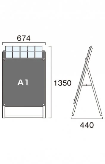 - W664mm×H910mm(A1縦対応) ※パンフレットケース5ヶ付(フタ有) ※屋内用、屋外用ケースには互換性があります。