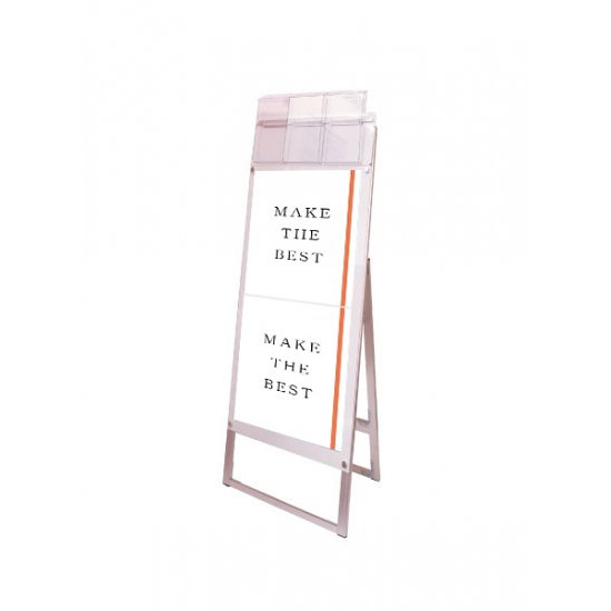お洒落な雰囲気にも合うA4三つ折りパンフレット用ケースが付いたスタンド看板