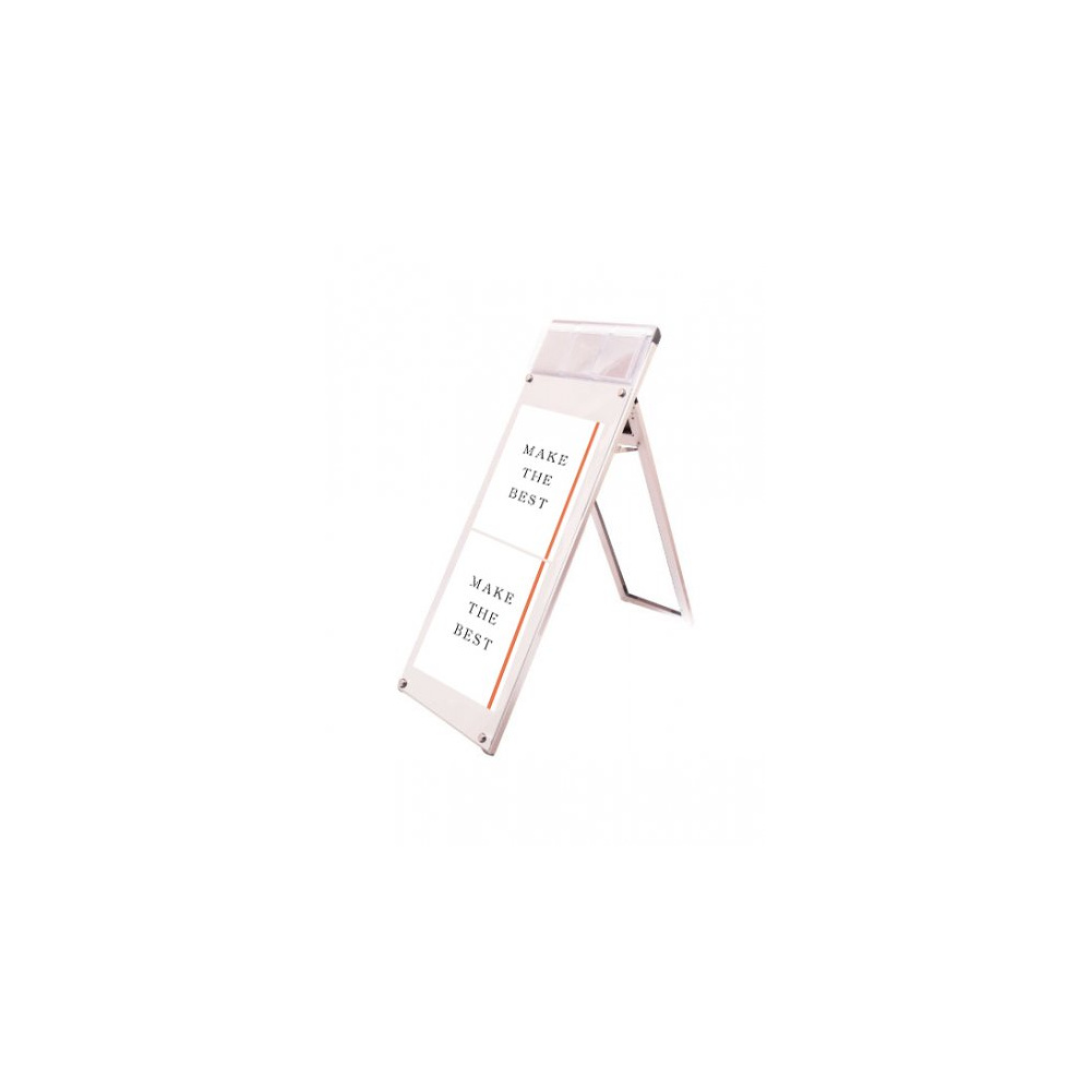 お洒落な雰囲気にも合うA4三つ折りパンフレット用ケースが付いたスタンド看板