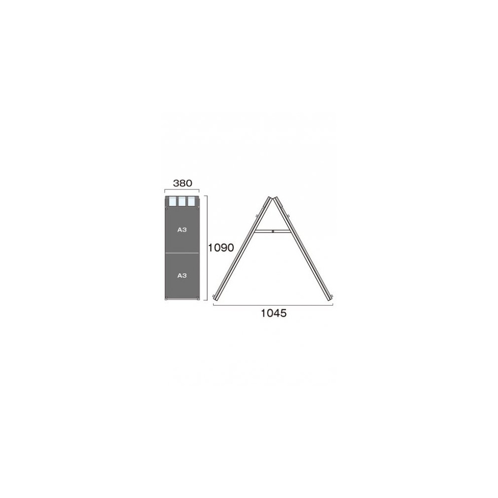 - W370mm×H910mm(A3縦縦/A1縦半分対応) ※パンフレットケース3ヶ付(フタ無) ※屋内用、屋外用ケースには互換性があります。