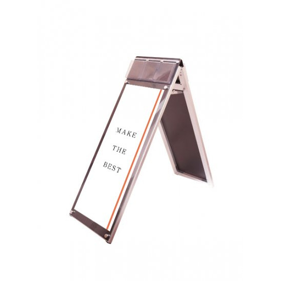 お洒落な雰囲気にも合うA4三つ折りパンフレット用ケースが付いたスタンド看板