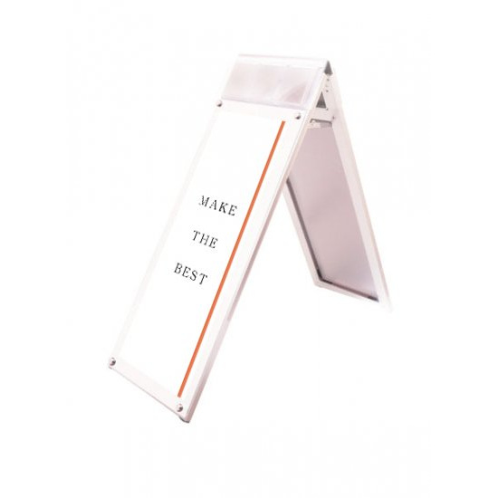 お洒落な雰囲気にも合うA4三つ折りパンフレット用ケースが付いたスタンド看板
