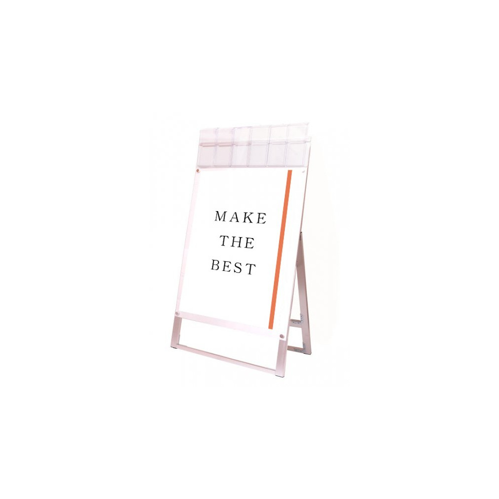お洒落な雰囲気にも合うA4三つ折りパンフレット用ケースが付いたスタンド看板