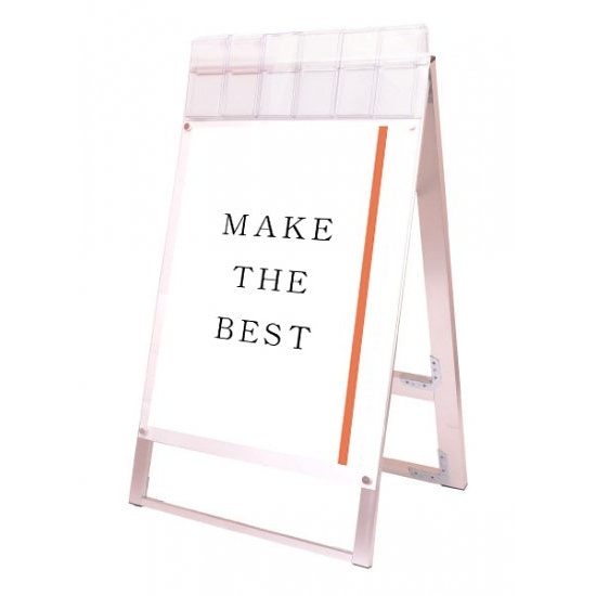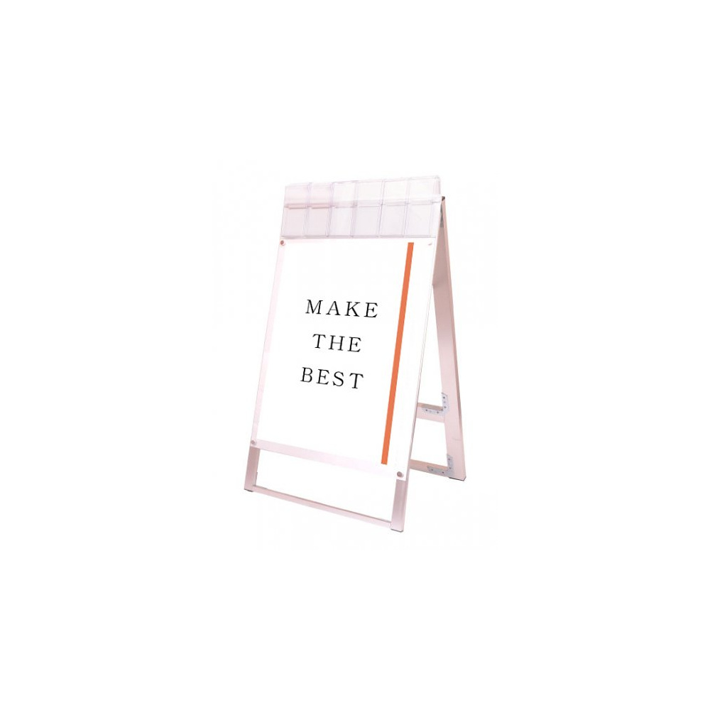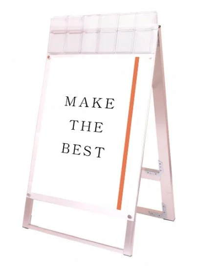 お洒落な雰囲気にも合うA4三つ折りパンフレット用ケースが付いたスタンド看板