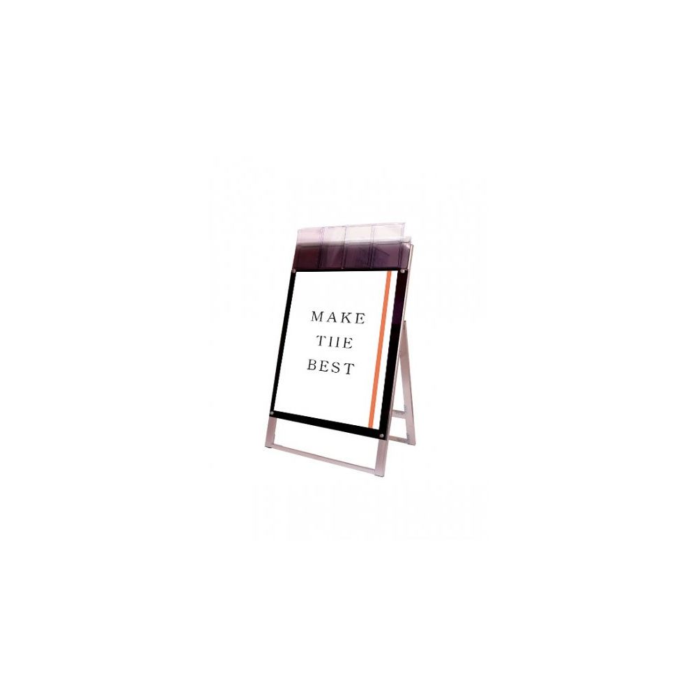 お洒落な雰囲気にも合うA4三つ折りパンフレット用ケースが付いたスタンド看板