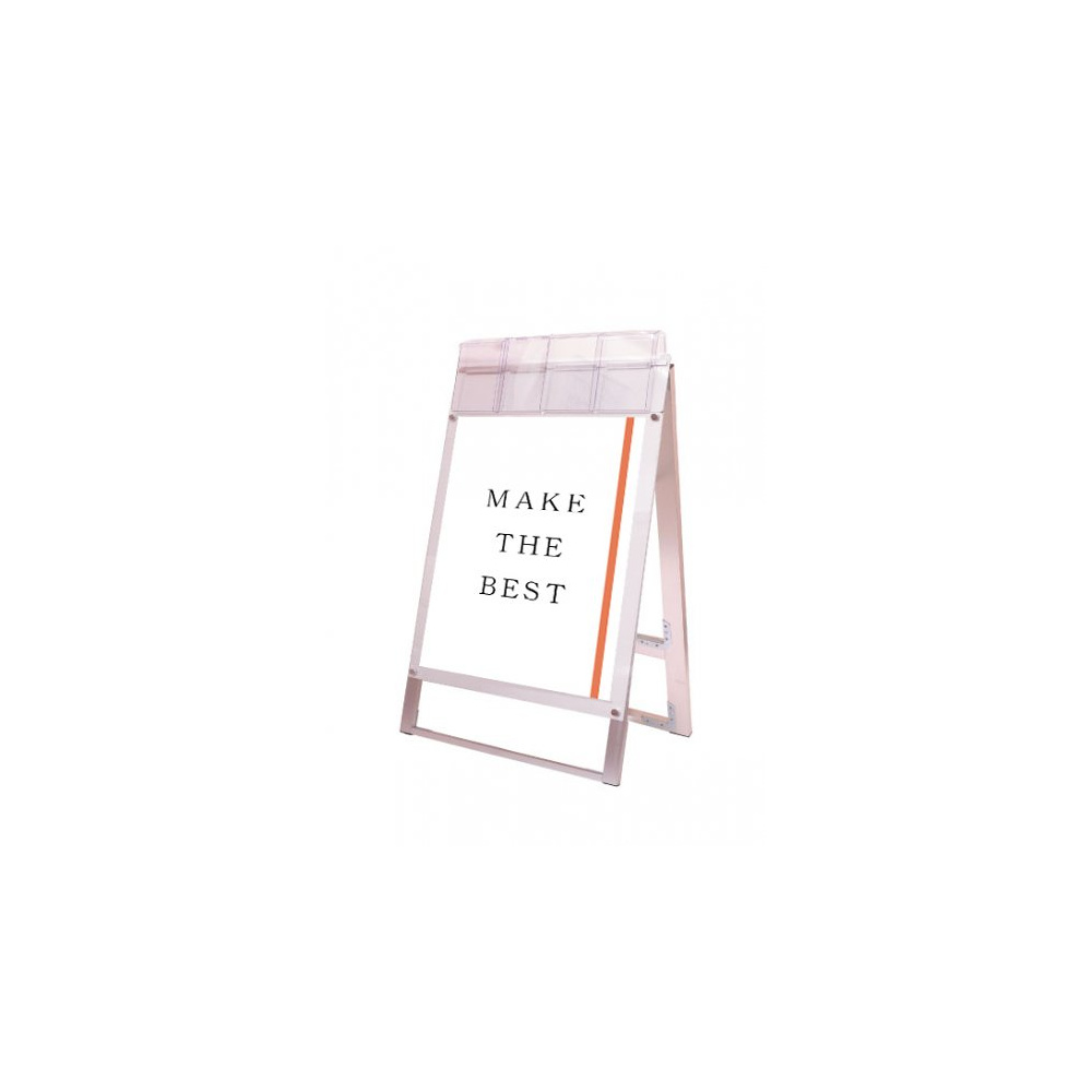 お洒落な雰囲気にも合うA4三つ折りパンフレット用ケースが付いたスタンド看板