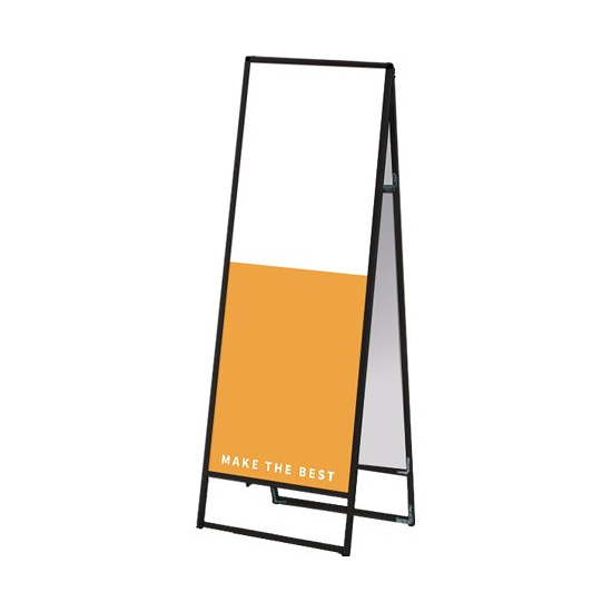- フレーム幅が22mmと細くスッキリとして見栄えのスタンダードなA型看板。MADE IN JAPANの安心の日本製で耐久性も抜群。