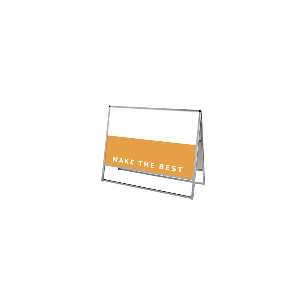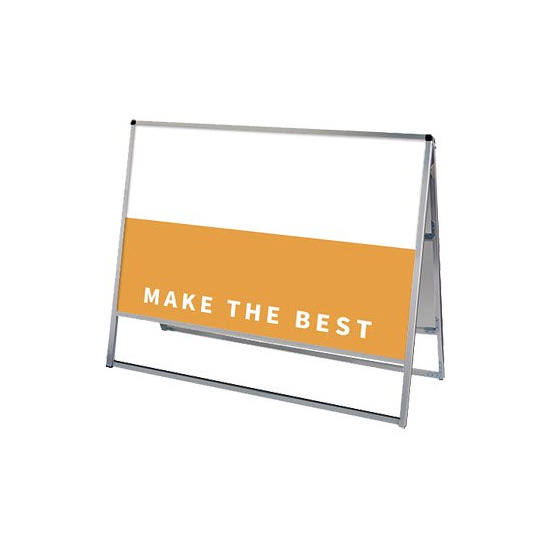 - フレーム幅が22mmと細くスッキリとして見栄えのスタンダードなA型看板。MADE IN JAPANの安心の日本製で耐久性も抜群。