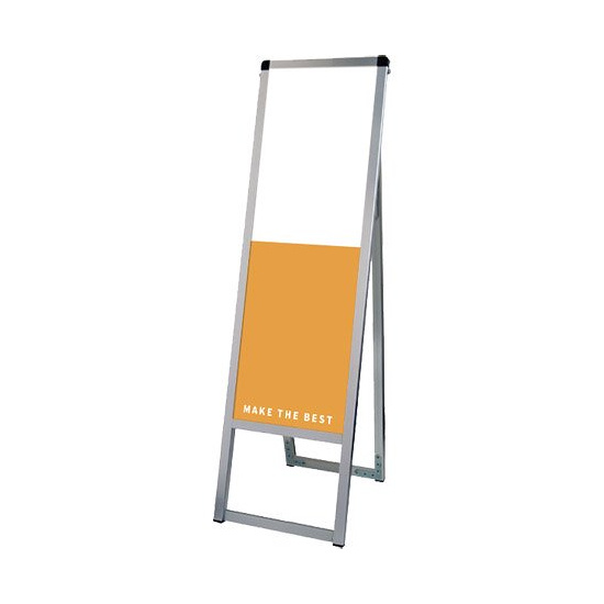 - フレーム幅が22mmと細くスッキリとして見栄えのスタンダードなA型看板。MADE IN JAPANの安心の日本製で耐久性も抜群。