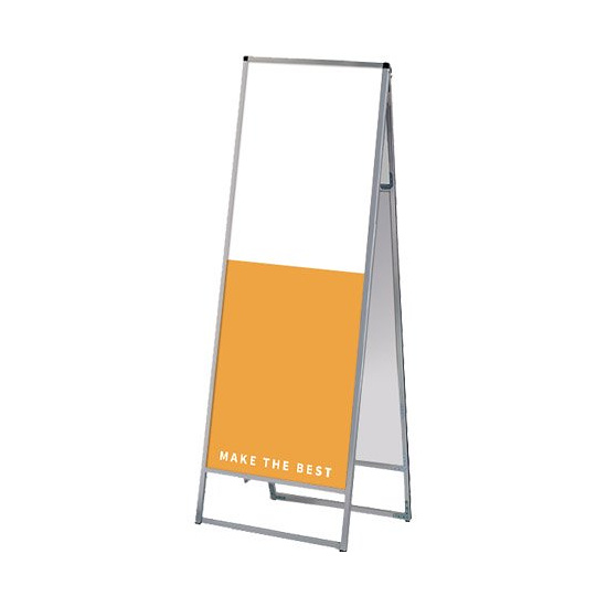 - フレーム幅が22mmと細くスッキリとして見栄えのスタンダードなA型看板。MADE IN JAPANの安心の日本製で耐久性も抜群。