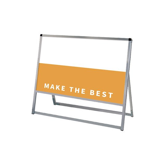 - フレーム幅が22mmと細くスッキリとして見栄えのスタンダードなA型看板。MADE IN JAPANの安心の日本製で耐久性も抜群。