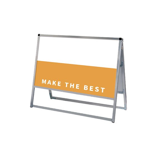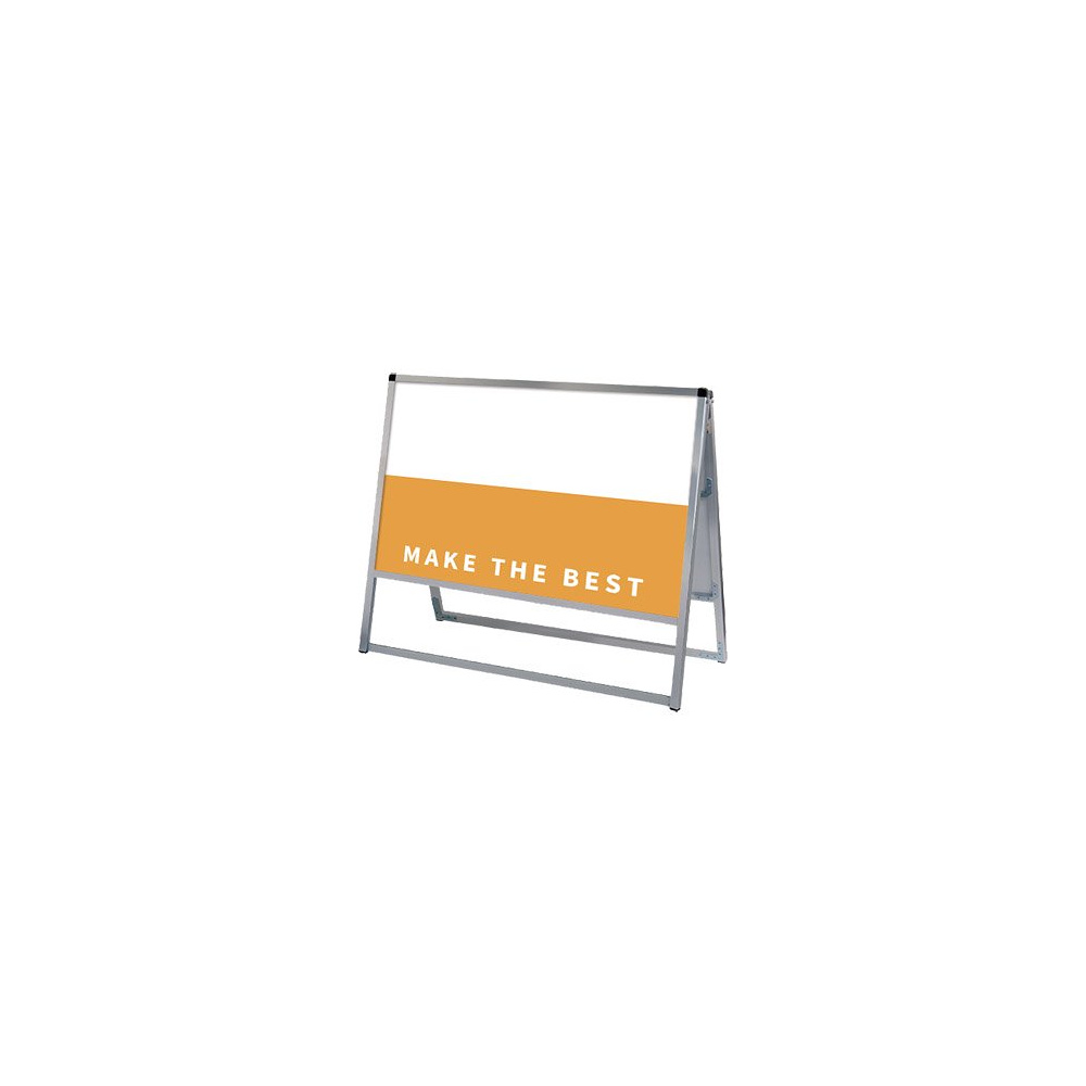 - フレーム幅が22mmと細くスッキリとして見栄えのスタンダードなA型看板。MADE IN JAPANの安心の日本製で耐久性も抜群。