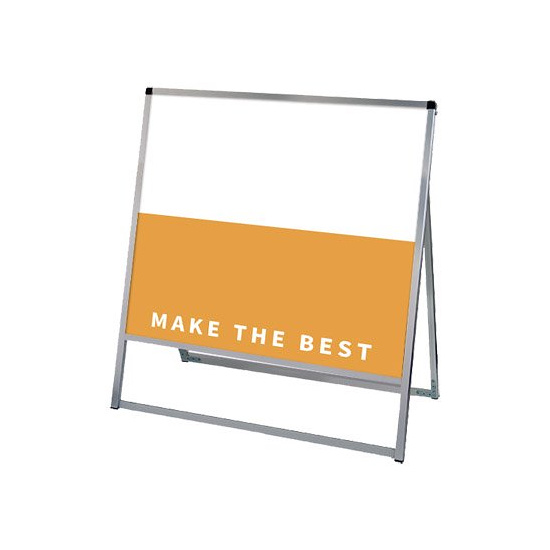 - フレーム幅が22mmと細くスッキリとして見栄えのスタンダードなA型看板。MADE IN JAPANの安心の日本製で耐久性も抜群。