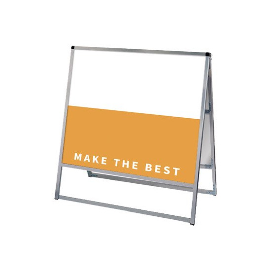 - フレーム幅が22mmと細くスッキリとして見栄えのスタンダードなA型看板。MADE IN JAPANの安心の日本製で耐久性も抜群。