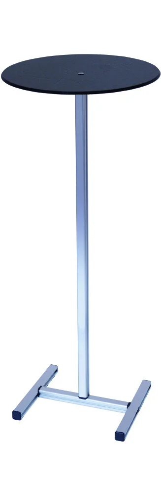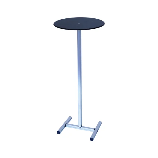 高級感のあるブラックアクリルを使用した省スペースにも設置できるコンパクトテーブル什器