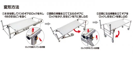 女性の力でもらくらく搬送できる大きなキャスターが付いた折りたたみ式ストレッチャー
