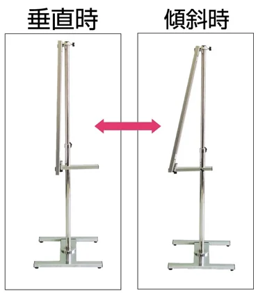 ■片面タイプのPAパネルスタンドは垂直掲示と傾斜掲示の1台で2通りの掲示が可能です。