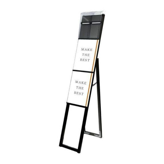 - A4三つ折りパンフレットケース付 イージーリンクスタンド看板 A4縦2片面 ブラック 屋外用 (BELSK-A4T2K-PCG)