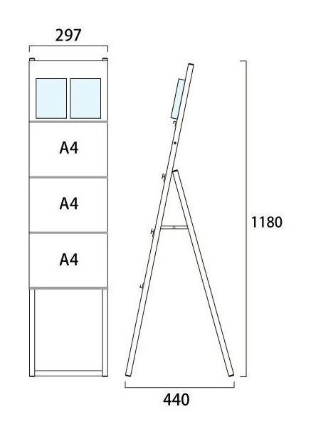 - A4三つ折りパンフレットケース付 イージーリンクスタンド看板