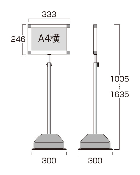 - スライド式屋外ポールサインスタンド A4ヨコ ブラック 片面 (BOPSS135-A4YK)