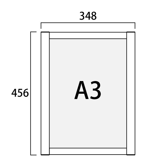 - 【ポスターの交換方法】上下2辺のフレームを開き、ポスターとアクリルカバーを片側に差し込むようにセットし、上下2辺のフレームを閉めアクリルカバーを固定します。