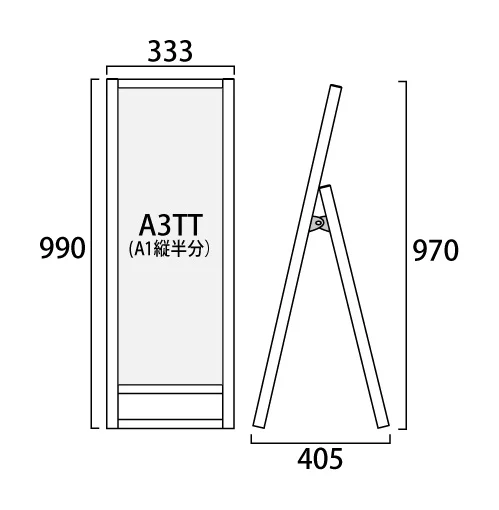 - フラットオープンスタンド看板 A3縦縦(A1ハーフ)ロウ シルバー 片面 (FOSK-A3TTLK)