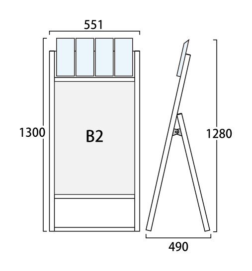 - パンフレットケース付 フラットオープンスタンド看板 B2 シルバー 片面 (FOSKP-B2K-G)