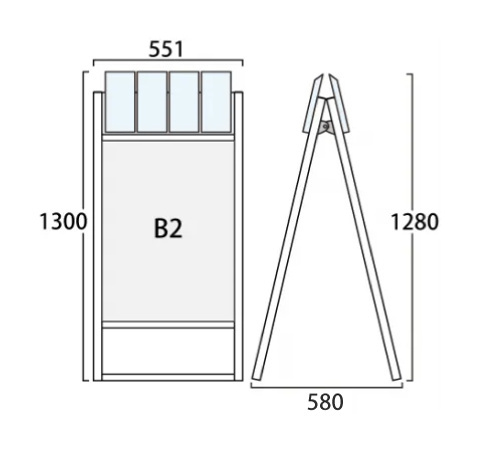 - パンフレットケース付 フラットオープンスタンド看板 B2 シルバー 両面 (FOSKP-B2R-G)