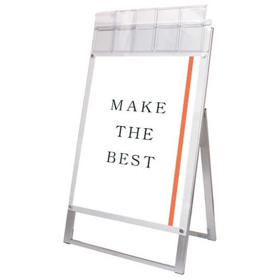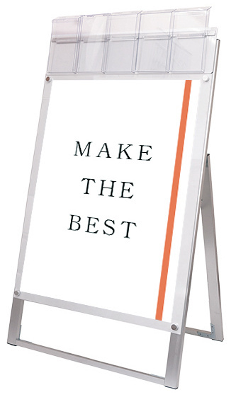 ポスターをより簡単に交換できるA4三つ折りパンフレット用ケースが付いたスタンド看板