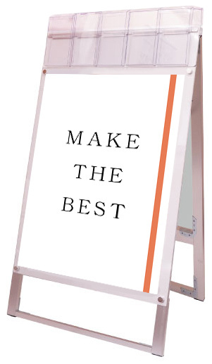 ポスターをより簡単に交換できるA4三つ折りパンフレット用ケースが付いたスタンド看板