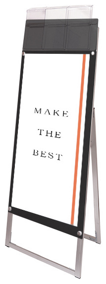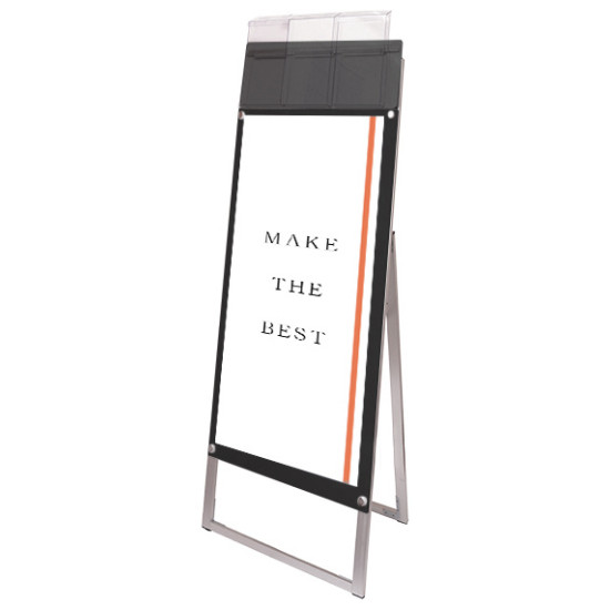 ポスターをより簡単に交換できるA4三つ折りパンフレット用ケースが付いたスタンド看板