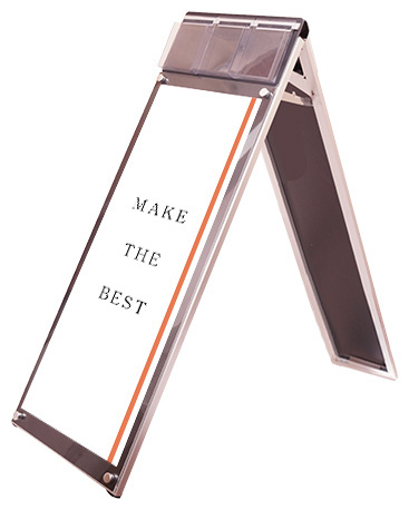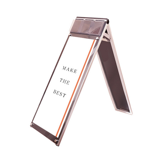 ポスターをより簡単に交換できるA4三つ折りパンフレット用ケースが付いたスタンド看板