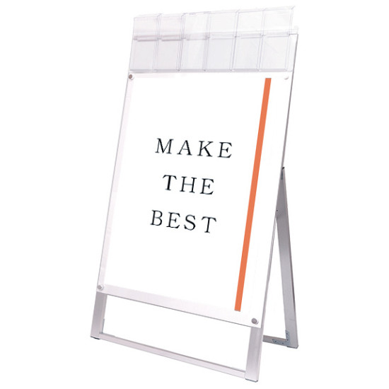 ポスターをより簡単に交換できるA4三つ折りパンフレット用ケースが付いたスタンド看板