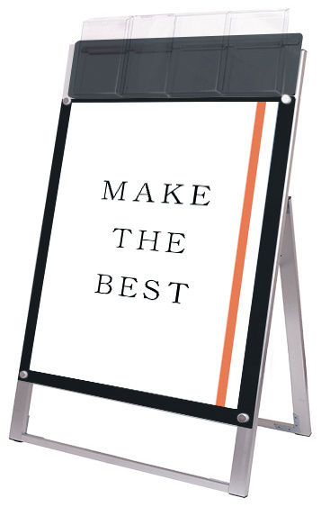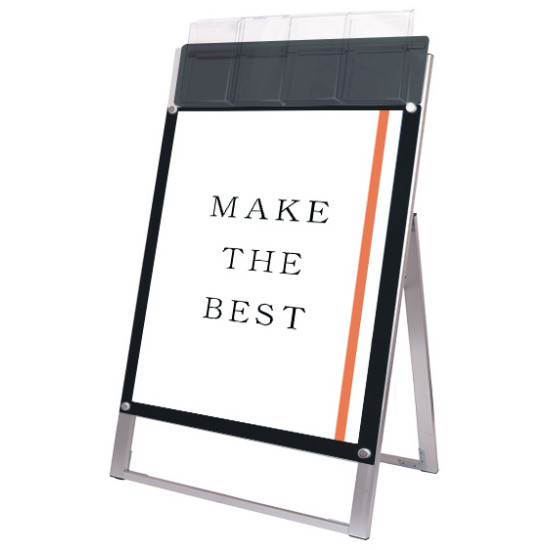 ポスターをより簡単に交換できるA4三つ折りパンフレット用ケースが付いたスタンド看板