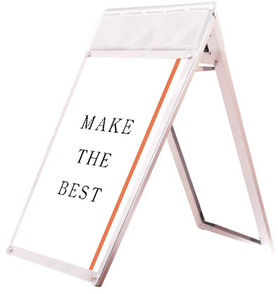 - お洒落な雰囲気にも合うA4三つ折りパンフレット用ケースが付いたスタンド看板