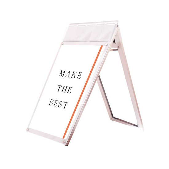A4三つ折りパンフレットを配布できるケースが付いた四辺開閉式のスタンド看板