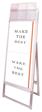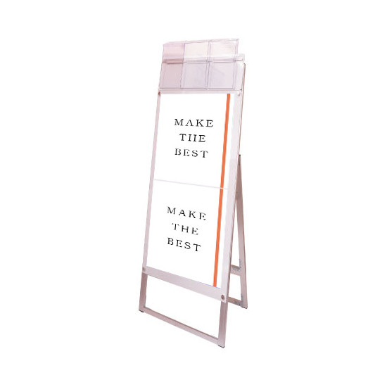- お洒落な雰囲気にも合うA4三つ折りパンフレット用ケースが付いたスタンド看板