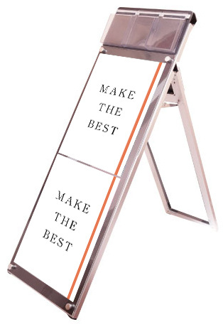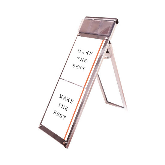 - お洒落な雰囲気にも合うA4三つ折りパンフレット用ケースが付いたスタンド看板